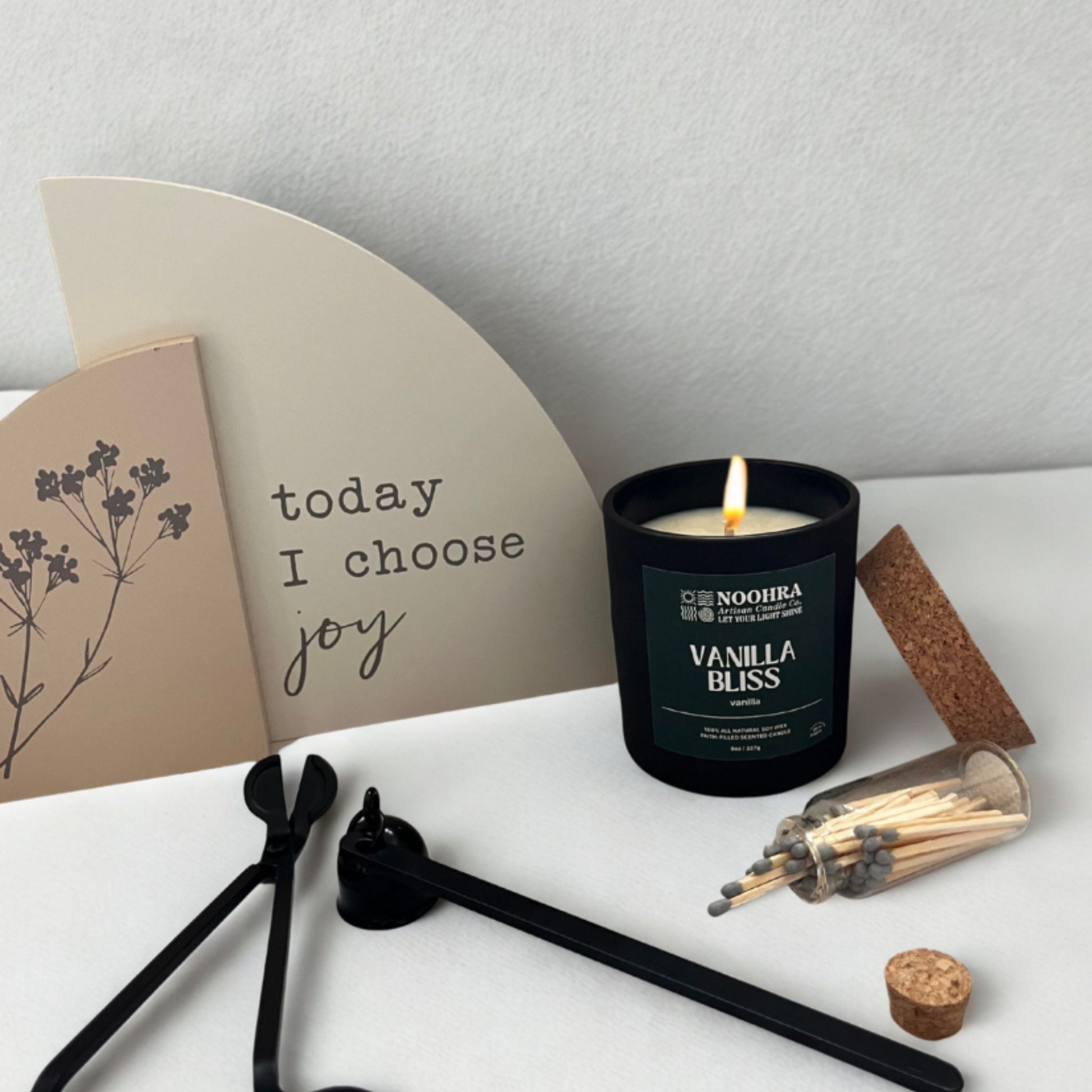 Each candle is hand-poured with care and carries Noohra’s signature Lift to Inspire label, revealing a hidden layer beneath the surface: a carefully chosen Bible verse paired with a gentle devotional reflection. Whether gifted or kept close, Vanilla Bliss echoes, “In peace I will lie down and sleep."